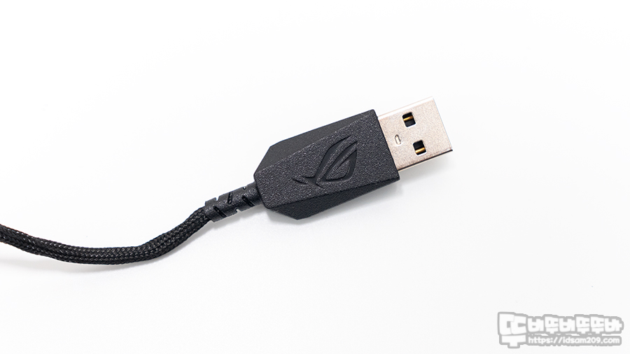 파라코드가 끝부분에는 ROG 로고가 각인된 USB 단자 모습.