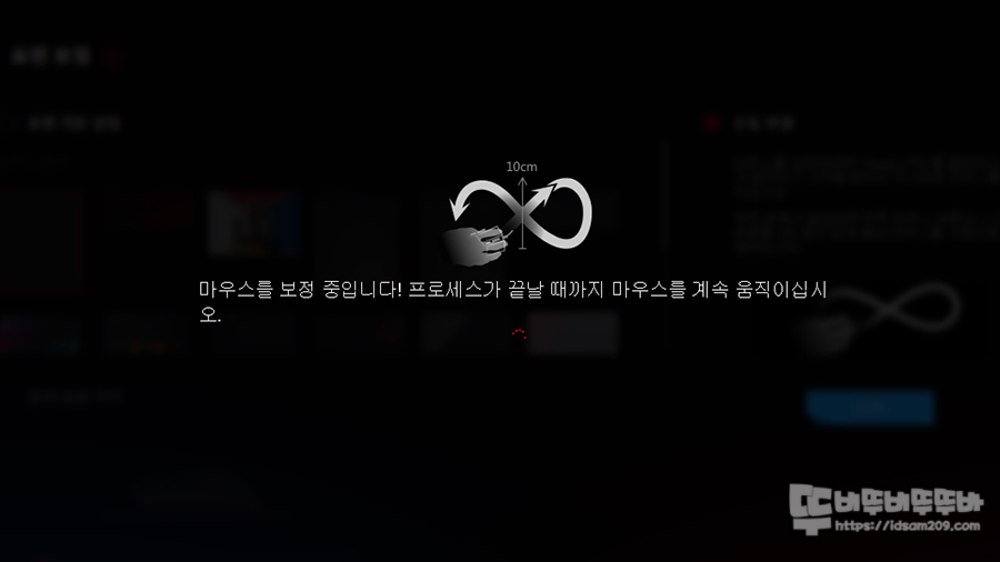 수동 보정에서는 10cm 간격으로 8자 형태로 보정이 끝날 때까지 계속해서 움직여주면 보정이 완료되어 사용이 가능합니다.
