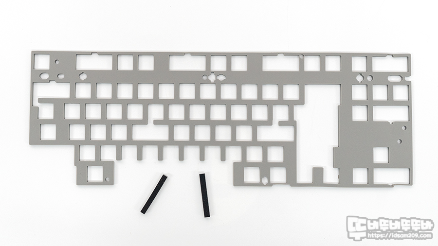실리콘 차음재 구성으로는 회색 컬러의 실리콘 차음재 이외 검정 컬러의 실리콘 바 2개가 제공되는 이것은 스페이스바 보강판의 공간을 메꾸는 용도로 제공되는 부분이니 참고하시기 바랍니다.