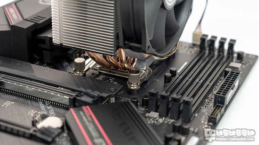CPU 표면에 써멀그리스를 도포하시고 써모랩 TRINITY 7.0 CPU 쿨러를 올려 손 너트로 고정을 해주면 되는데요.