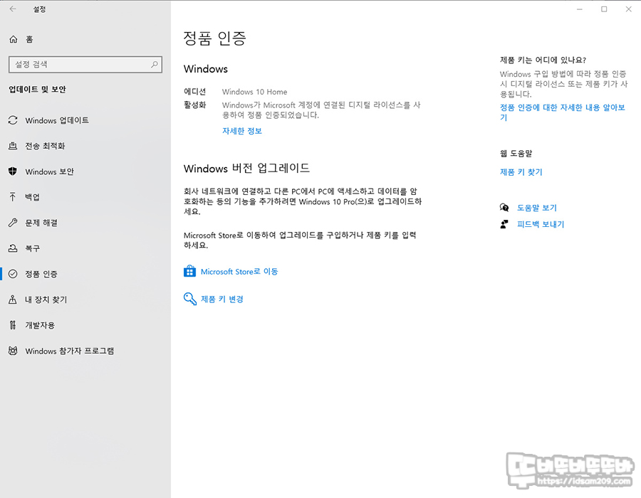 작년 12월 경에 시스템 업그레이드를 하면서 윈도우즈 정품 재인증을 받았던 적이 있는데 (https://idsam209.com/2454)