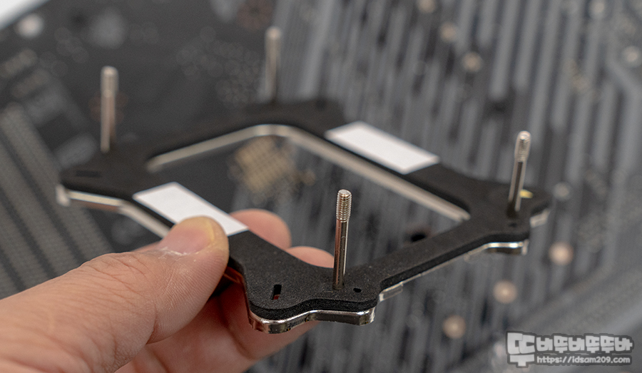먼저 백플레이트의 AMD AM4 소켓 홀에 고정볼트를 사진과 같이 결합해 줍니다.