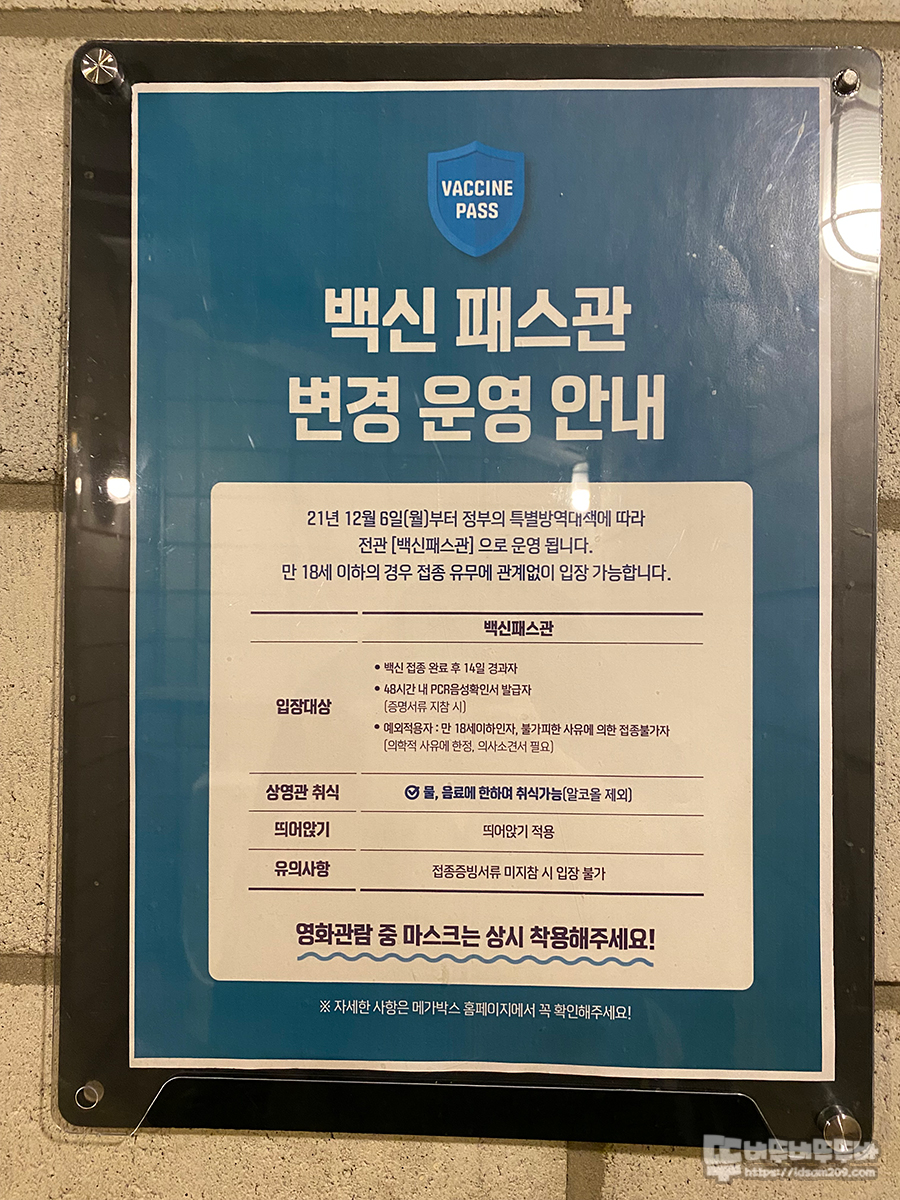 당분간 대부분의 극장들이 백신 패스관을 운영하기에 비슷할 거라 생각되는데요.