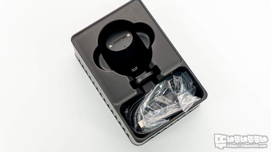 무선 충전독 베이스와 마우스에 장착하는 충전 커버 그리고 USB-C to A 케이블로 되어있는데 USB-C 단자 부분이 절개형으로 되어있다는 그냥 쓰기에 괜찮지만 단자 부분의 금속이 눌렸을 때 내구성이 안 좋으니 사용에 주의가 필요해요.