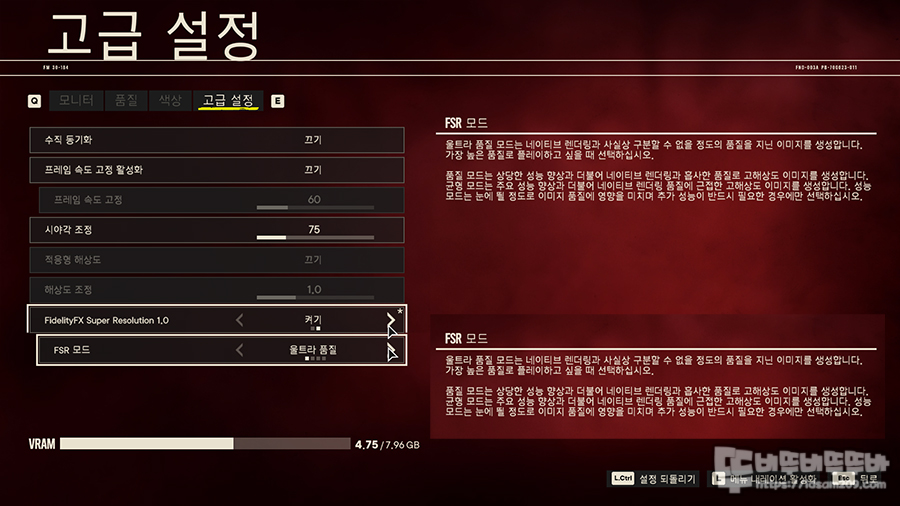 Far Cry 6에서는 고급 설정을 통해 FidelityFXSuperResolution(FSR) 기능을 활성화하여 4가지 옵션을 통하여 사용자의 시스템 환경에 맞게 설정하여 게임을 즐길 수 있습니다.