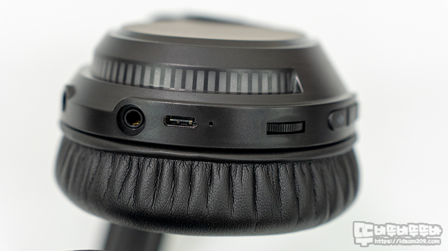 그 외로는 볼륨 다이얼과 USB-C 충전 겸 유선 사용 연결 단자, 3.5mm 스테레오 단자 그리고 마이크 입력 단자로 구성되어있습니다.
