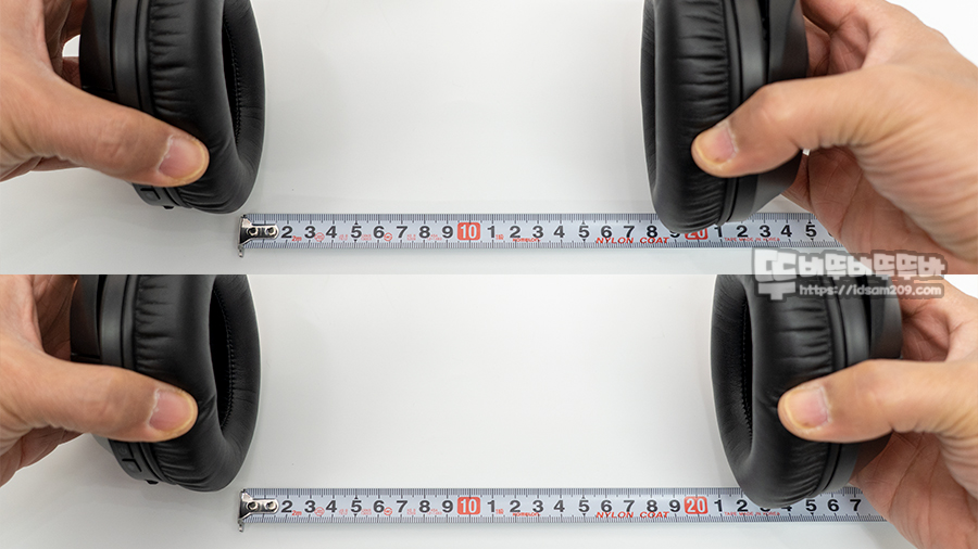 헤어 밴드를 최소로 줄인 상태에서 이어패드를 11자를 유지하는 길이가 약 180mm, 최대로 늘렸을 때 약 210mm 정도로 군모(머리둘레) 기준으로 설명드리자면...