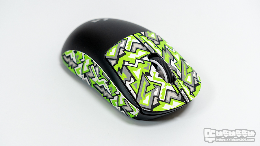 지슈라에 기본 그립 패치를 붙여 사용하고 있는 방구석 게이머 아이가 리뷰 작업을 한 제 마우스를 만져보다니 느낌이 좋다고 이야기하네요.
