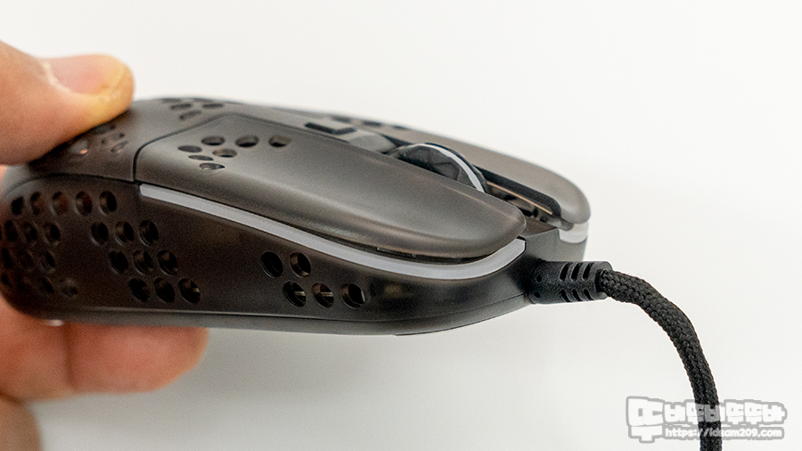 Xtrfy 엑스트리파이 MZ1 게이밍 마우스는 버튼 아랫부분에 LED 효과를 보여주는 디퓨저 라인이 적용되어 버튼 부분과 몸체 내부의 LED가 반투명 하우징을 투과하여 화려한 효과를 보여주는 게 매력이며 전면의 케이블 몰딩은 마우스를 바닥면에 놓았을 때 케이블 쓸림이 없게 살짝 위로 향하는 디자인으로 유선 마우스로 게임을 즐기는 분들의 케이블 쓸림 고충을 잘 반영한 거 같습니다.