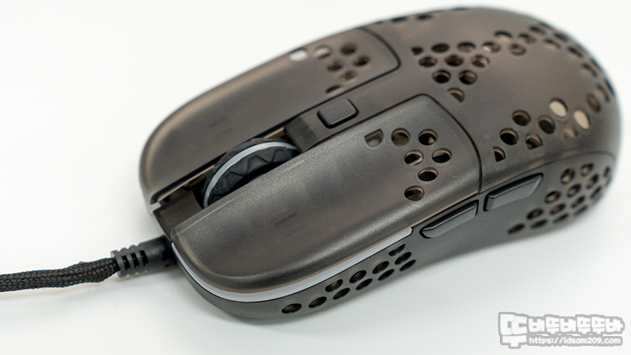 개인적으로 마우스 버튼 디자인은 낮아서 좋긴는 한데 Kailh GM 8.0 스위치 클릭압이 조금 높은 편이기에 마우스를 그립 한 상태에서 한 곳을 기준으로 연속적으로 클릭을 하는 경우 커서가 고정되지 않고 움직이는 현상을 경험할 수 있었는데요.