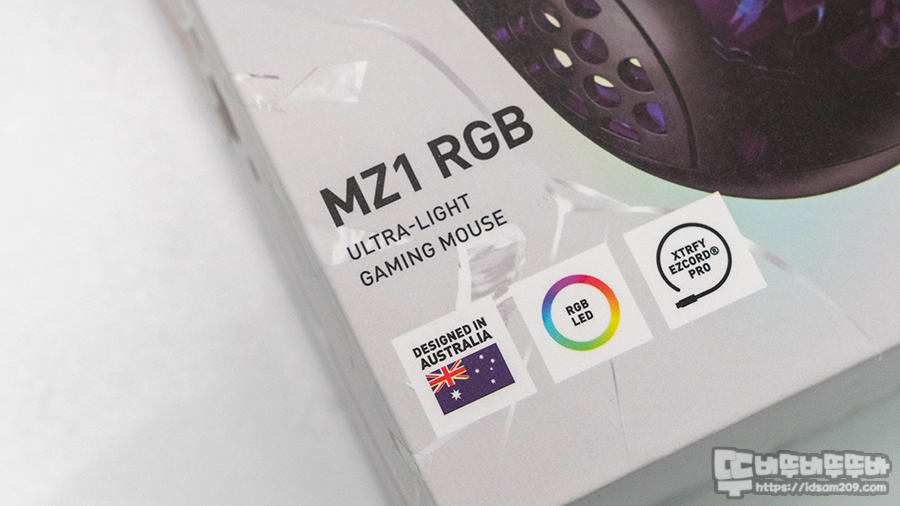 Xtrfy 엑스트리파이 MZ1 게이밍 마우스 패키지에는 제품의 모습과 모델명 그리고 울트라 라이트 게이밍 마우스라는 표현으로 가벼움을 강조하고 있습니다.