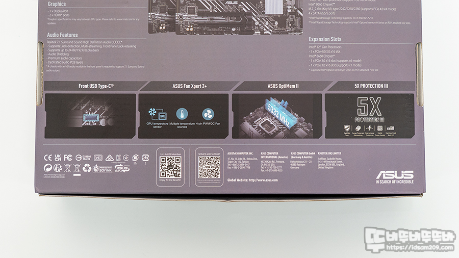 ASUS PRIME B660M-A D4 STCOM 메인보드 패키지에서는 최신 모델답게 다양한 내용을 다루고 있습니다.