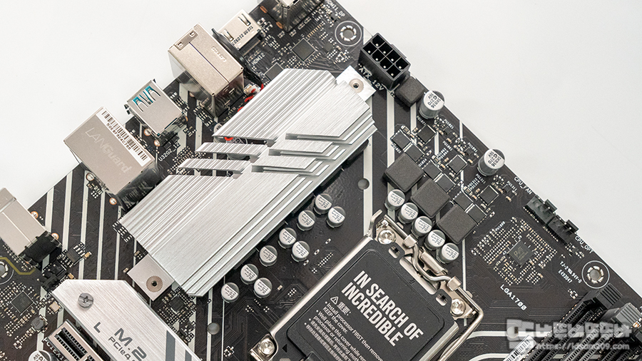 8 페이즈의 전원부로 디자인된 ASUS PRIME B660M-A D4 메인보드는 전체는 아니만 일부 페이즈에 히트싱크가 적용되어 DIGI+ Power Control을 통한 전압, 클럭 및 전력의 효율적인 관리를 지원하고 있습니다.