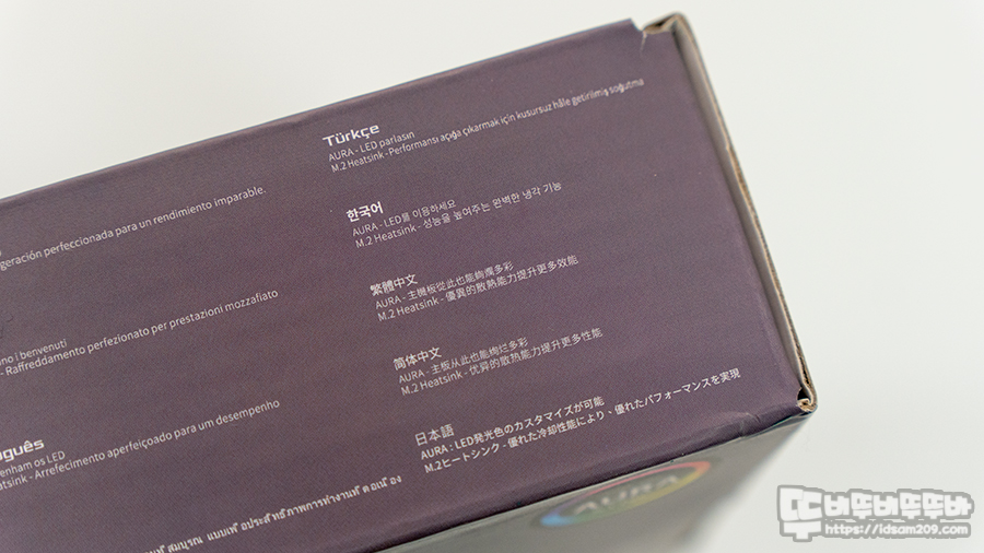 패키지에서 유일하게 한글을 확인할 수 있는 측면 인쇄 모습.