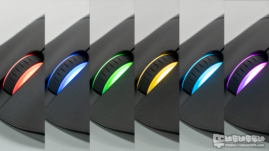 휠 스크롤에 표현되는 DPI LED 표현 모습 (기본값 컬러 기준)