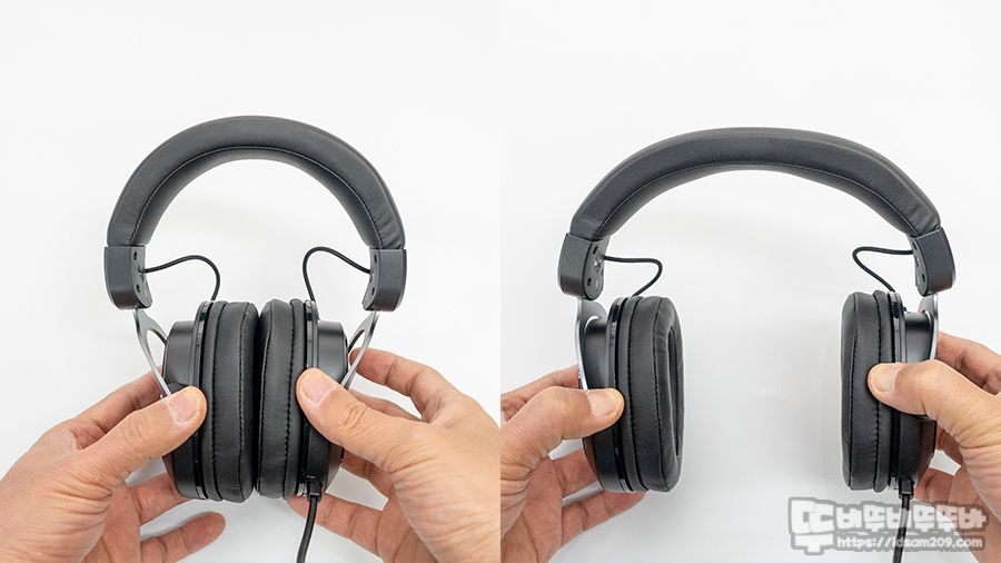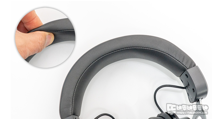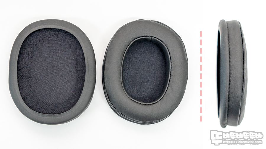 커버 형태로 디자인된 인조가죽 이어패드는 생각보다 두툼하지 않지만 적절한 쿠션감을 줍니다.