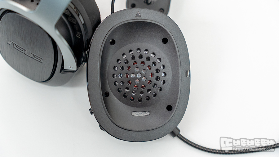 50mm ASUS Essence 드라이버가 적용된 스피커 플레이트 부분과 하우징 윗부분에는 밀폐형 챔버 기술이 적용된 스피커 유닛의 작동 시 원활한 스피커 움직임과 내부 울림을 제거하는 에어밴드가 적용되어 있어 선명하면서 풍부한 저음을 들려주는 특징을 있고요.