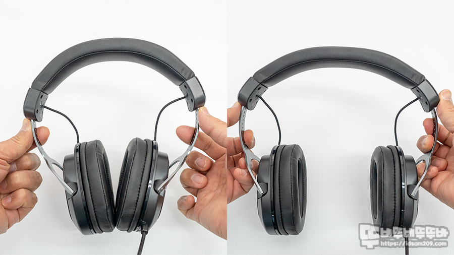 이런 경우는 헤어밴드 내부에 형태를 유지하는 금속이 없어 좌우 길이 조절하는 스틸 소재의 금속이 안쪽으로 수납되는 구조로 두상 형태에 따라 헤드셋 착용 시 불편함이 있을 수 있습니다.