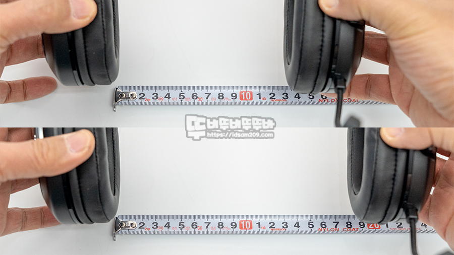 헤어밴드를 최소로 줄인 상태에서 이어패드를 11자를 유지하는 길이가 약 130mm, 최대로 늘렸을 때 약 180mm 정도로 군모(머리둘레) 기준으로 설명드리자면 군모 56호(약 지름 178mm) / 57호(약 지름 180mm)까지 넉넉하게 착용이 가능하지만 정수리 부분의 높이에 따라 착용감이 다를 수 있으니 사이즈를 참고하시면 도움이 되실 거 같네요.