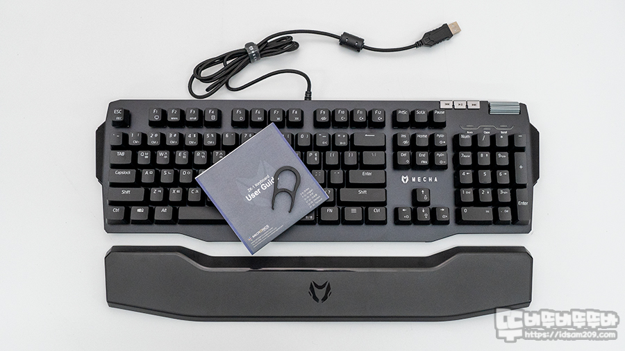 제품은 MECHA ZK-1 본체, 전용 팜레스트, 키캡 리무버, 매뉴얼로 구성되어 있으며, 보통 있을법한 투명 블리스터 커버는 포함되어 있지 않아 아쉬움이 남네요.