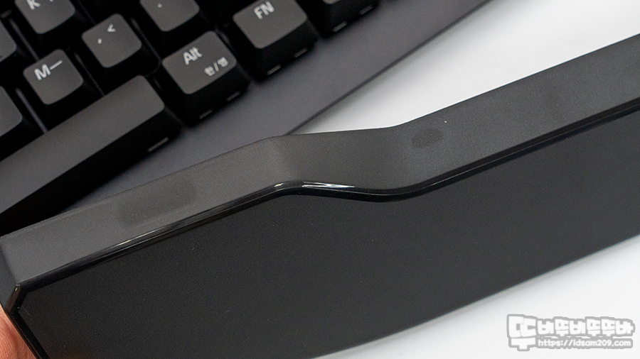 커세어를 비롯하여 기본으로 제공되는 키보드의 팜레스트 들은 대부분 손바닥 끝부분을 올려놓고 사용하는 형태가 아닌 손바닥이 걸쳐서 사용하는 간이용 디자인이 적용하는데 마이크로닉스 MECHA ZK-1도 비슷한 형태로 디자인되었습니다.