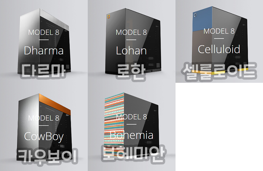 패키지에는 로한, 보헤미안, 다르마, 셀룰로이드, 카우보이 등 GEO메트릭퓨처 Model 8 모델이 표기되어 있지만 현재 다나와에는 다르마, 로한, 셀룰로이드만 등록이 되어있습니다.