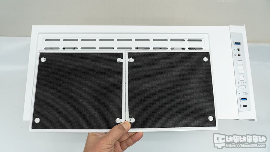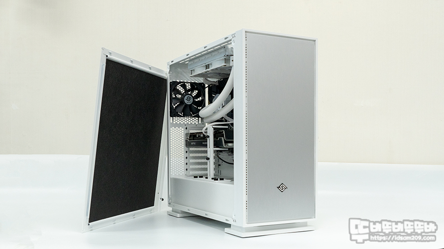 제품은 무소음 케이스에 맞는 내부 구조 디자인 된 제품이 아닌 일반 샤시 기준에 패널 구조를 변경한 상태라 먼지필터를 상황에 따라 사용하지 못할 수 있으니 참고하시기 바랍니다.
