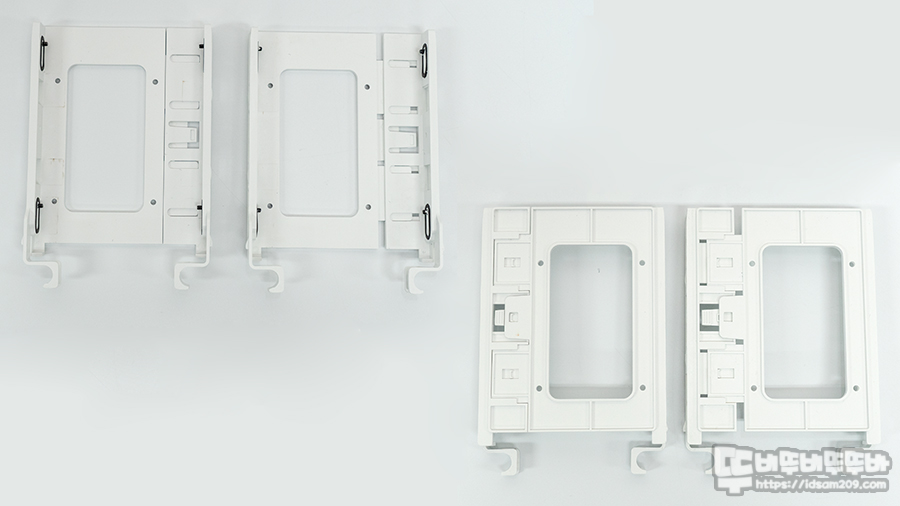 나사 없이 사용 가능한 HDD 가이드는 바닥면 중앙에 고정 클립을 눌러 개폐가 가능하며 SSD 사용 시 바닥면에 나사홀을 이용하시면 편리하게 사용할 수 있습니다.