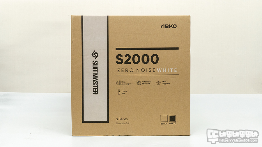 앱코 SUITMASTER S2000 제로노이즈 케이스 패키지 모습입니다.