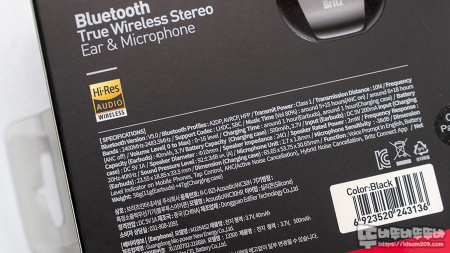 #Britz #브리츠 #AcousticANC30HR #프리미엄 #고해상도 #블루투스이어폰 #LDAC코텍 #LHDC코텍 #아마추어드라이브 #터치컨트롤 #노이즈캔슬링 #뚜비뚜비뚜뚜바 #idsam209