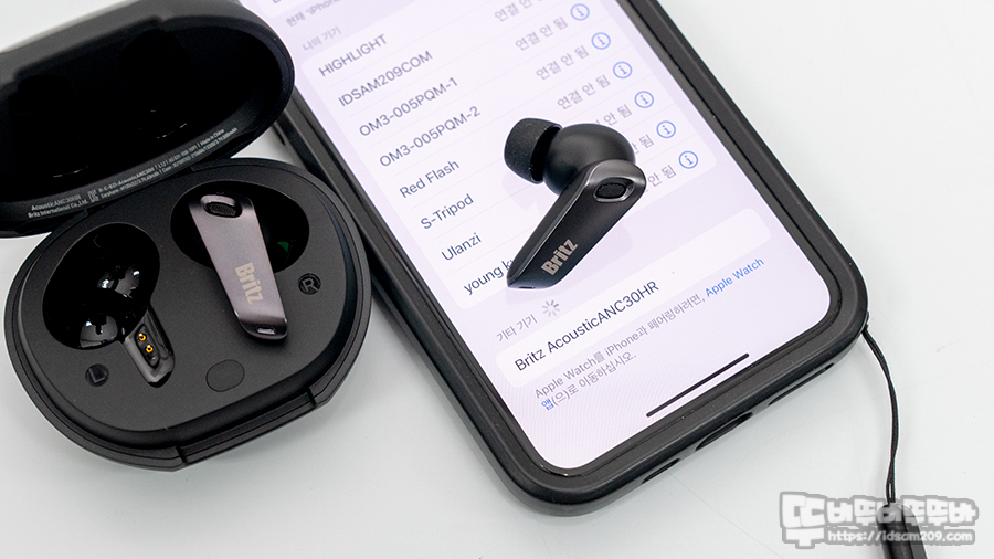 보통 초기에는 충전 케이스 뚜껑을 열면 자동으로 페어링 모드로 진입하지만 케이스 중앙의 버튼을 3초간 눌러 페어링 모드 진입이 가능한데 페어링 모드 진행 시 스마트폰의 "Britz AcousticANC30HR"를 선택하여 페어링을 마무리 해주면 됩니다.