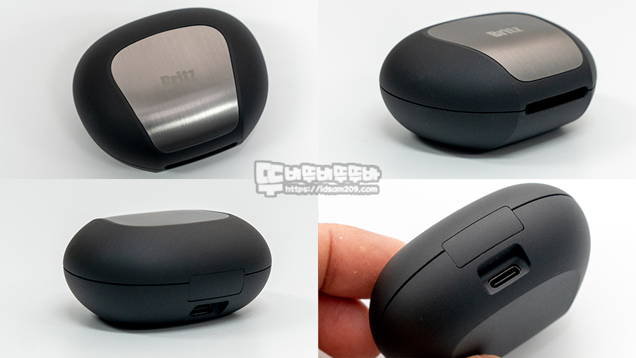 조개 모양으로 디자인된 브리츠 AcousticANC30HR 블루투스 이어폰은 뚜껑 중앙 부분에 메탈 소재를 사용하여 고급스러움을 주고 있으며 케이스 뒷부분에 USB-C 충전 단자가 위치하고 있으며 충전 단자가 아래쪽에 위치하여 충전 중에도 케이스 뚜껑을 오픈 상태로 유지가 가능합니다.