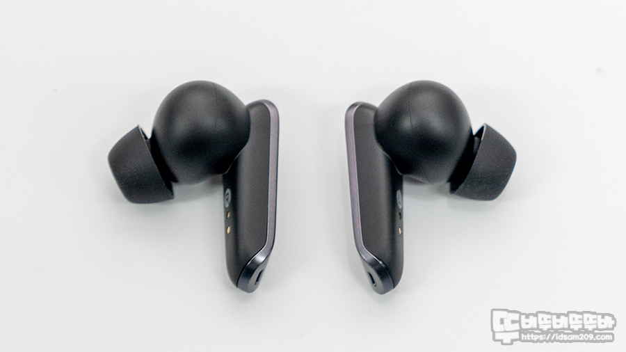 터치 컨트롤을 지원하는 무선 이어버드는 저음과 중음역 10mm 드라이버 유닛과 고음을 담당하는 아마추어 밸런스 드라이버로 구성된 이어버드 헤드 부분이 보통의 이어폰보다 살짝 뚱뚱한 편인데요.