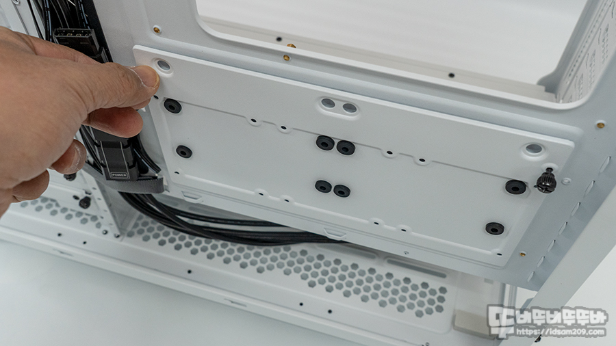 조립 과정에서 한 가지 불편한 점이라며 샤시 중앙의 케이블 정리 홀을 가려주는 실리콘 커버가 조금만 건드려도 잘 빠진다는 점인데요.