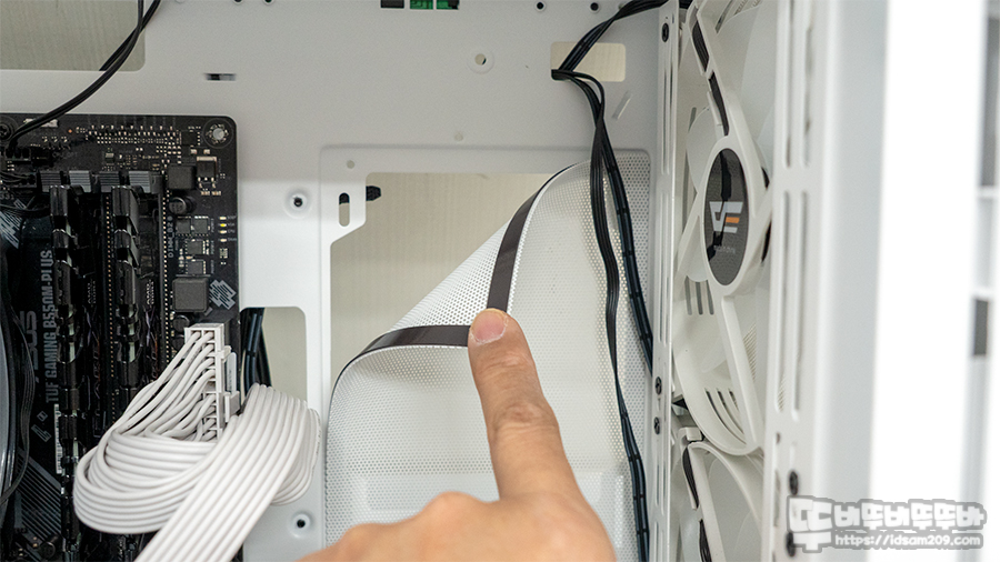 앞서 설명드린 대로 사이드 패널의 먼지 패널은 샤시보다 사이드 패널에 부착해두시는 게 케이스 전체에 먼지 유입을 방지하는 측면에서 더 좋아 보이니 참고하시기 바랍니다.