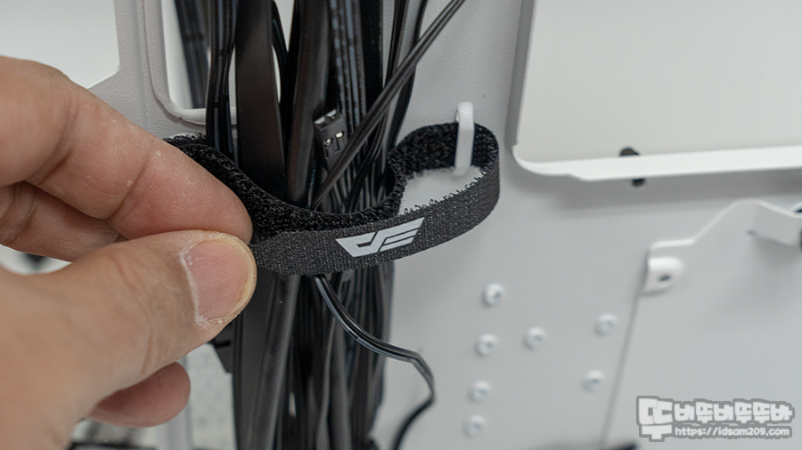 중앙에 부착된 벨크로 타이는 다양한 케이블을 꽉 눌러주는 효과가 있어서 케이블을 정리하는데 정말 효과적이었습니다.