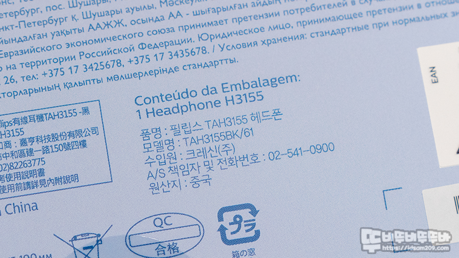 바닥면에는 필립스 헤드셋 유통사인 크레신(주)의 고객지원센터 전화번호 02-541-0900을 확인할 수 있으니 잘 메모를 해두시기 바랍니다.