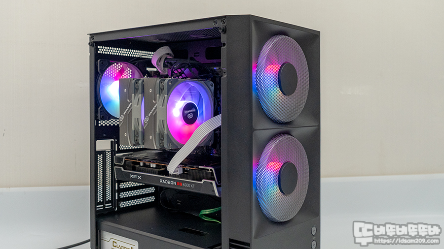M-ATX 메인보드와 타워형 CPU 쿨러를 장착했지만 전체적으로 공간적인 여유가 있는 편이고요.