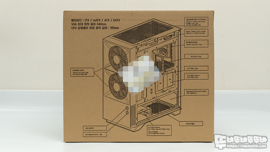 메인보드 : E-ATX / ATX / M-ATX / ITX 폼팩트 지원 / 저장장치 ; 3.5" HDD 최대 3개, 2.5" SSD 최대 5개 지원