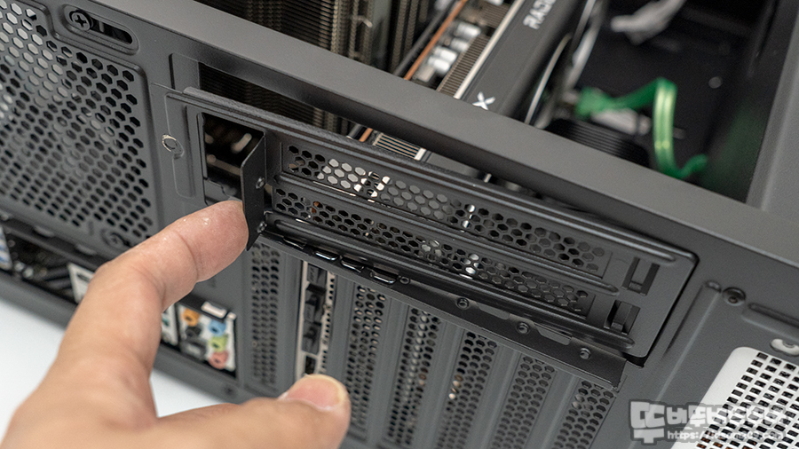 조립 시 PCI 슬롯 가이드는 상단의 버티컬 가이드를 제거해야 VGA 장착이 가능하니 참고하시기 바랍니다.