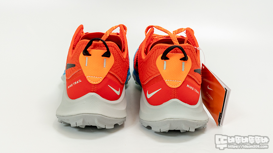 신발의 바깥 부분은 검정색 라인으로 표현하는 Nike 로고를 안쪽에는 트레일로 로고 그리고 뒷부분에 흰색으로 표현되는 Nike로고 모습을 확인할 수 있는데 대칭형 느낌의 로고가 아니어서 살짝 아쉬운 감이 있네요.