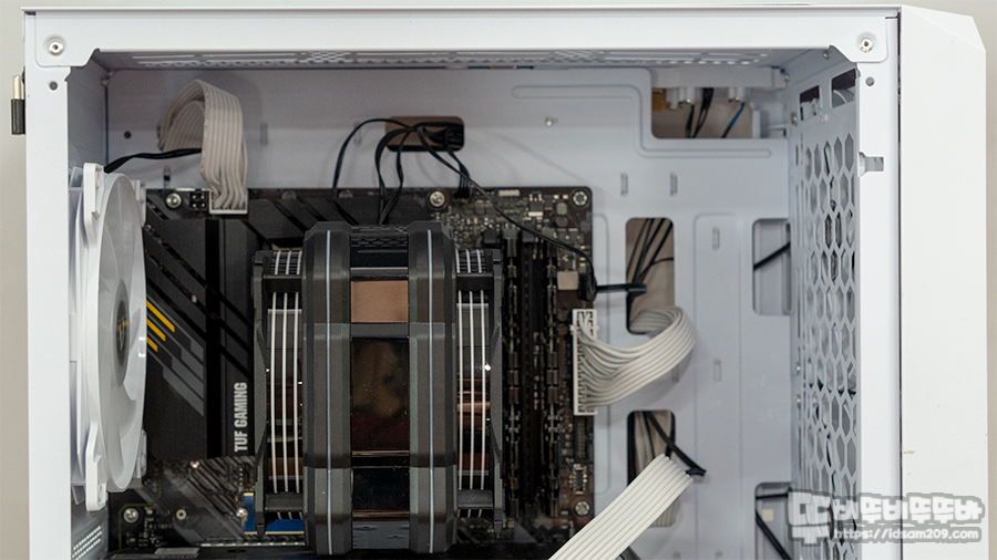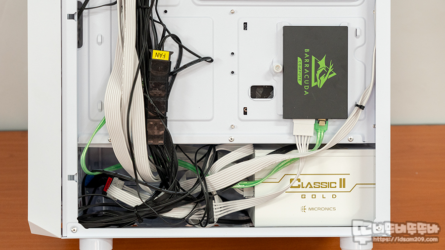 샤시 내부를 거치지 않기에 편안한 케이블 정리가 가능하며 샤시 뒤쪽에 약 20mm 공간이 있으니 케이블 정리 시 두께 조절에 신경 쓰셔야 합니다.