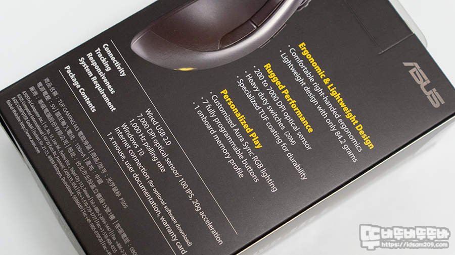 요즘은 나름 경량형인 80g 대 무게로 안정적인 그립을 지원하는 ASUS TUF Gaming M3 게이밍 마우스는 2만원대 판매되는 마우스 치고는 나름 고급스러움이 느껴지는데요.