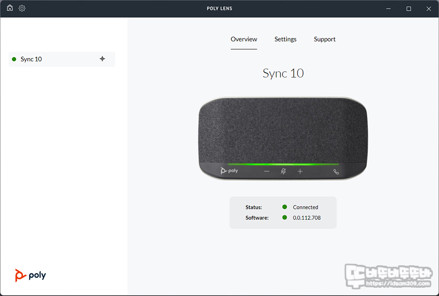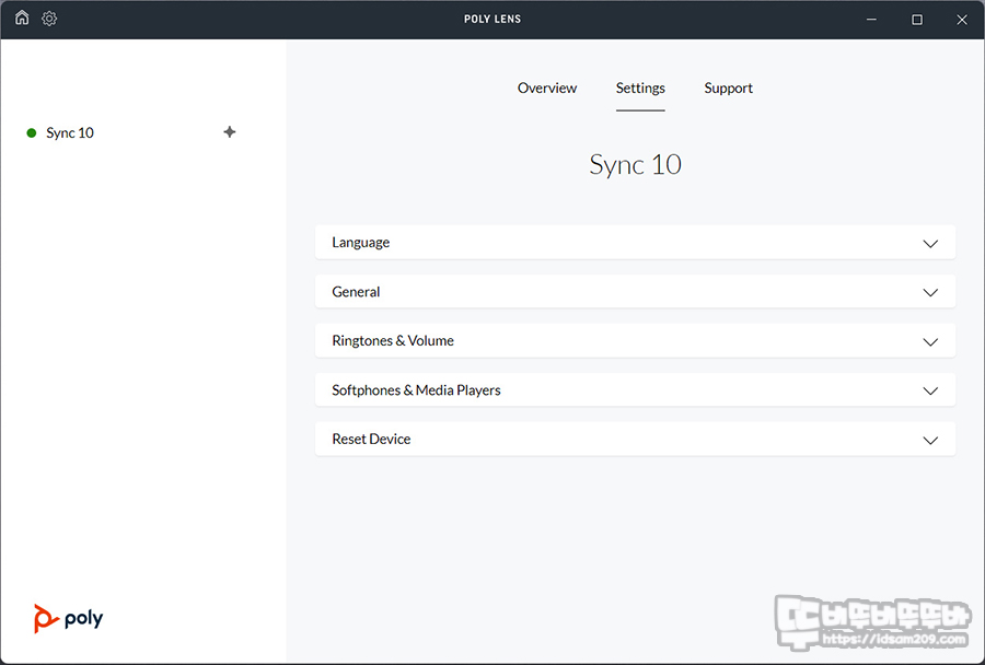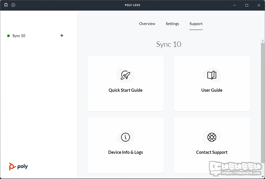 프로그램 실행 후 왼쪽의 Sync 10을 선택하면 제품의 상태를 알려주는 오버뷰 메뉴와 세팅 메뉴 그리고 서포터 메뉴를 확인할 수 있는데요.