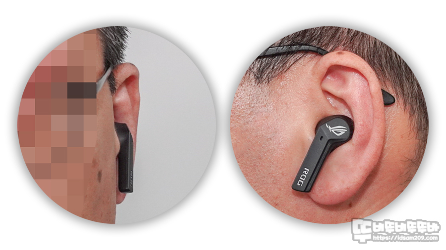 개인적으로 무선 이어버드는 외형적으로 투박한 느낌이지만 착용감은 좋은 편이며 터치센서가 있는 하우징의 ROG 로고 부분이 평면이 아닌 살짝 꺾여있는 디자인이라 손가락으로 터치 시 살짝 위치를 찾아야 하는 불편함이 있네요.