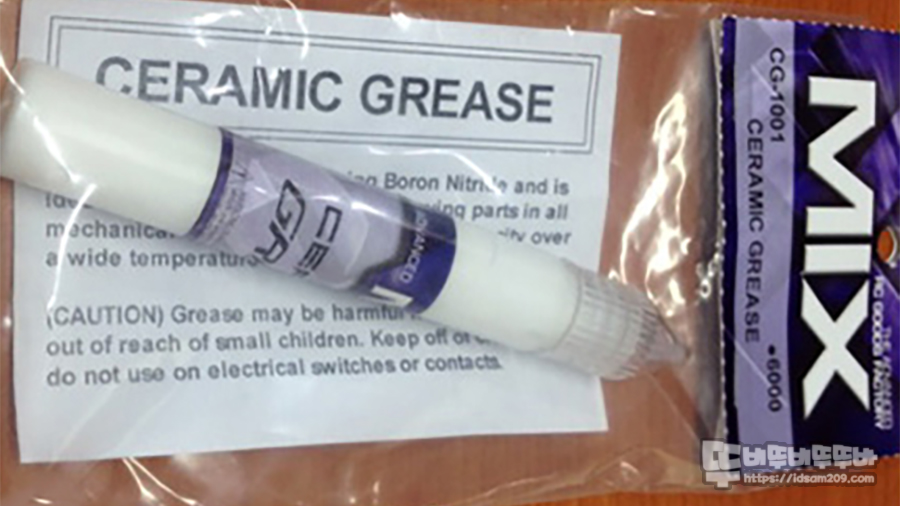 RC 제품으로 나온 제품으로 세라믹의 원료인 보론 나이트라이드를 함유하는 제품으로 플라스틱 기어 부분에 사용하는 용도로 판매되는 제품인데. 윤활 면적을 고르게 바를 수 있는 형태가 아니다 보니 생각보다 원하는 느낌이 나오지 않더군요.