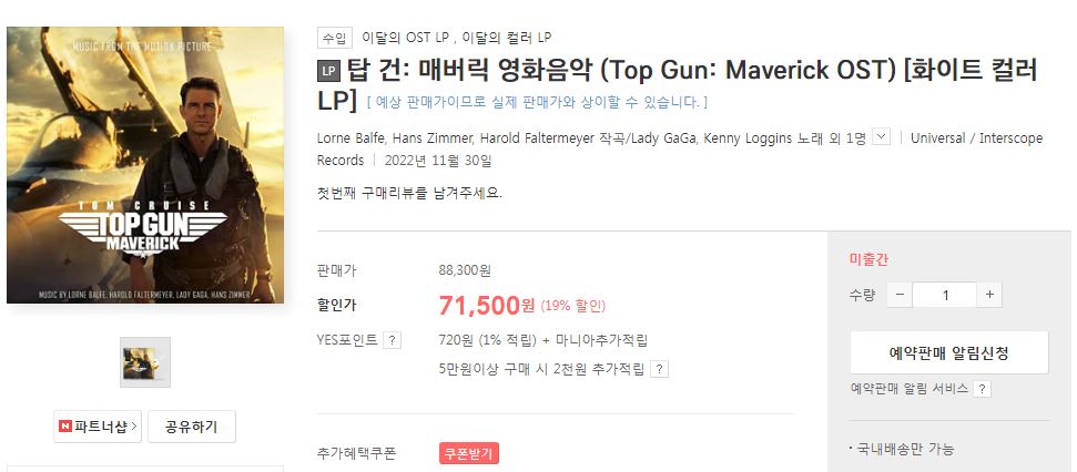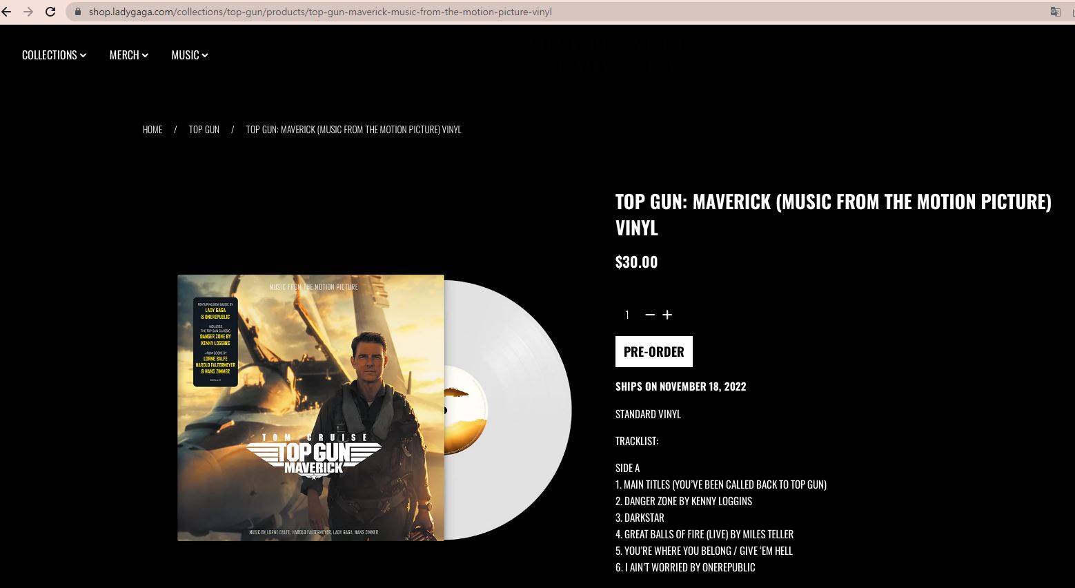 링크 : https://shop.ladygaga.com/products/top-gun-maverick-music-from-the-motion-picture-vinyl