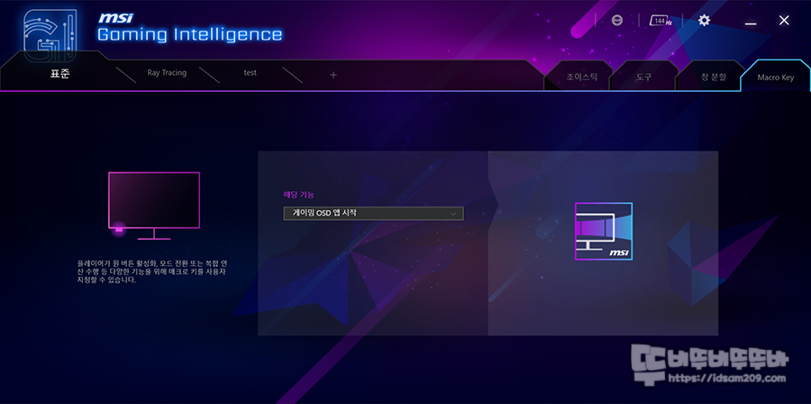 모니터 오른쪽 하단에 위치하게 되는 매크로 키는 Gaming OSD 소프트웨어 설정 후 사용이 가능하니 참고하세요.
