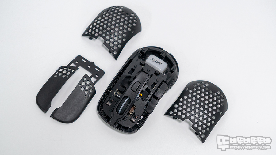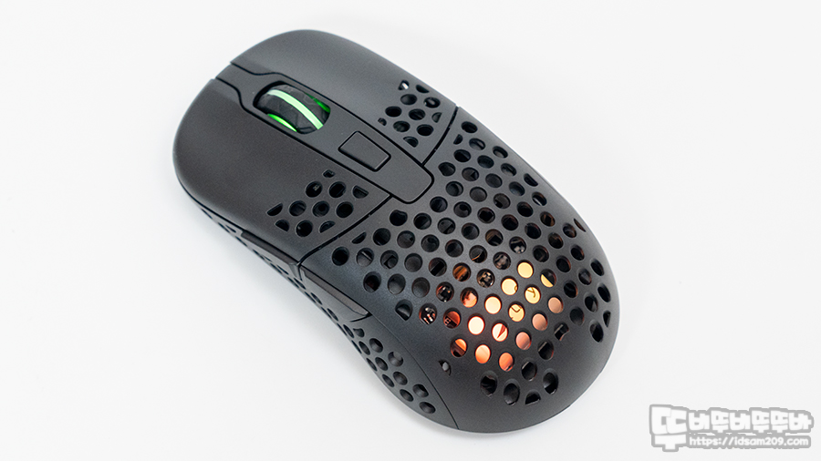 XTRFY M42 RGB WIRELESS 게이밍 마우스는 버튼부 일부를 제외한 모든 면적이 타공 쉘로 적용된 모델인데요.