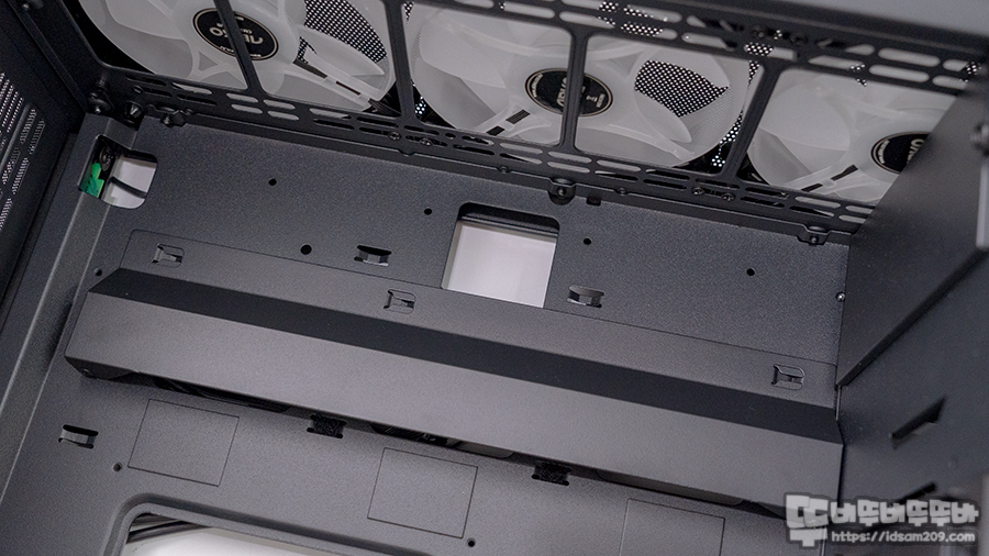 특히 360mm 라디에이터 장착 시 수평으로 바로 넣기 힘들고 샤시 내부에 대각선으로 넣어서 수평으로 돌려 장착을 해야 하니 참고하세요.